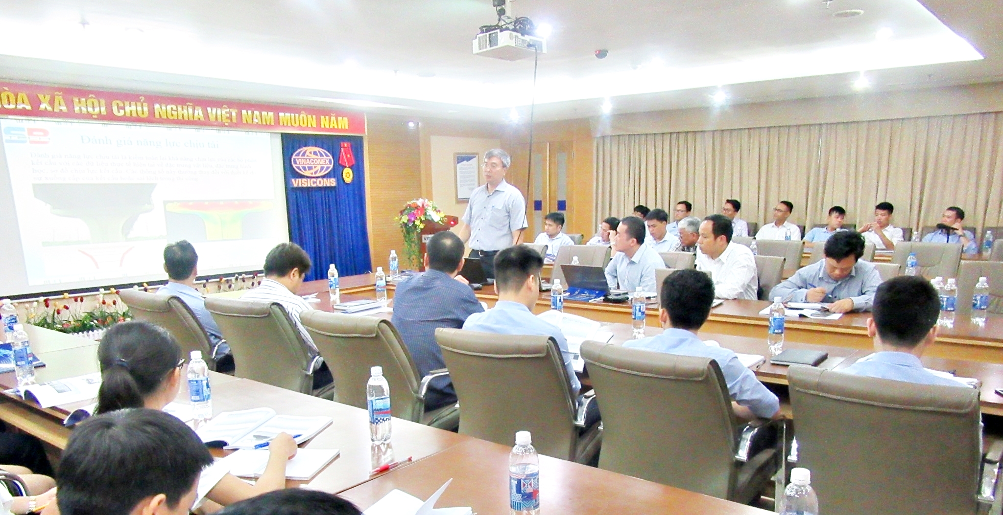 Staff of SiteTech Global, Visicons participated in the conference were heard experts of SBTech company and also teachers of Hanoi University of Transport as: M.S. Vu Van Thanh, Ph.D To Giang Lam Together with Mr. Ong Wee Keong, Assistant General Manager of Fyfe Asia Pte Ltd from Singapore presented the new technology being applied to strengthen the structure of traffic and civil works.
